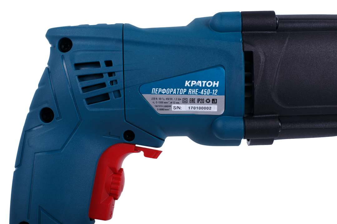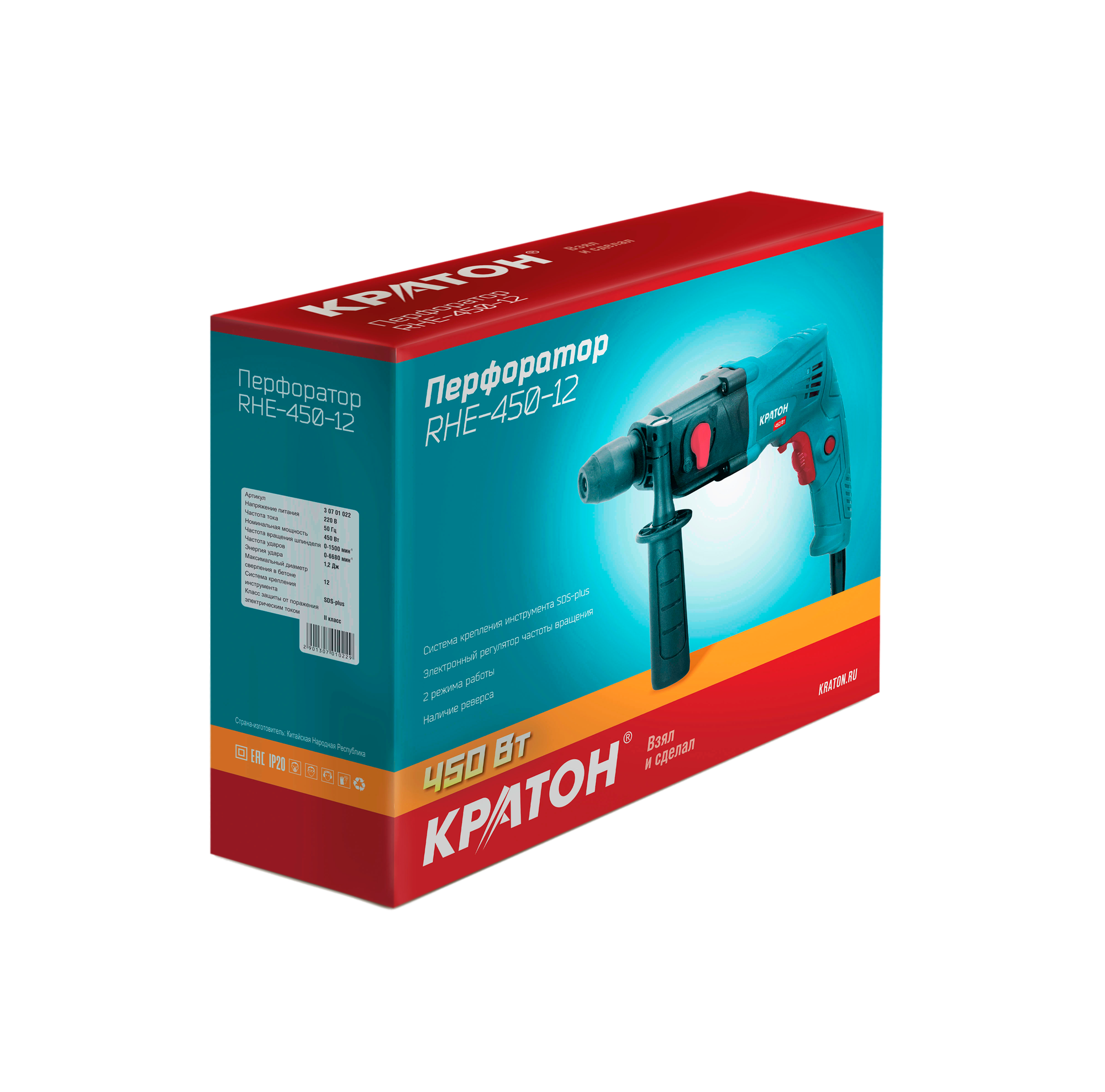 Перфоратор Кратон RHE-450-12, SDS-plus, электронная регулировка частоты вращения, энергия удара: 1,2 Дж информация: