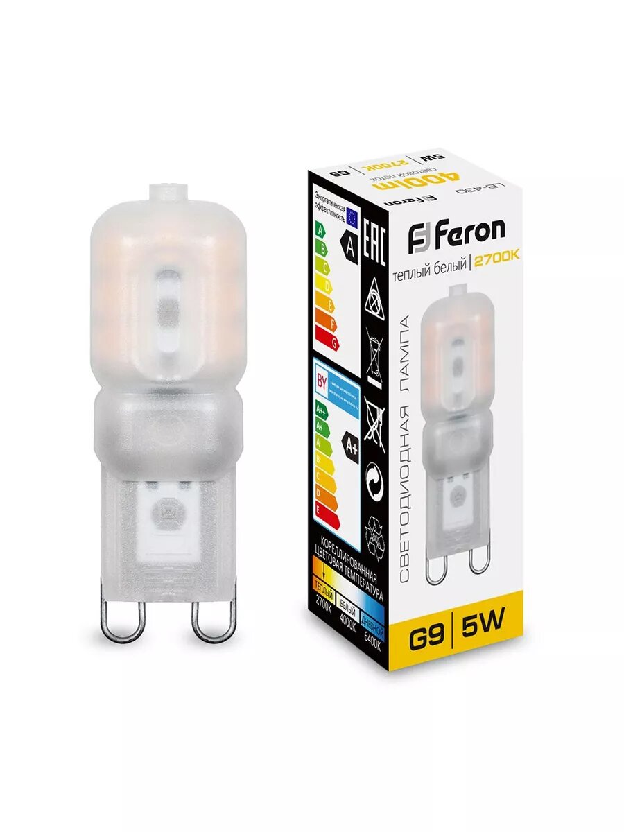 Лампа светодиодная FERON LB-430, G9, 5W, 2700K, теплый белый свет, 5 шт информация: