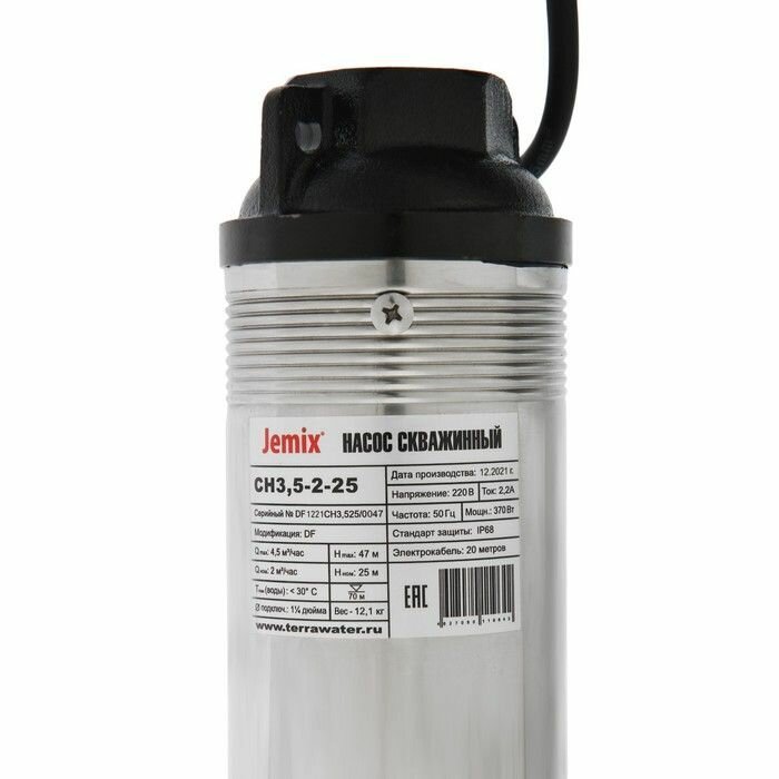 Насос скважинный Jemix СН-3,5-2-25 370 Вт, 3,5 дюйма кабель 20 м