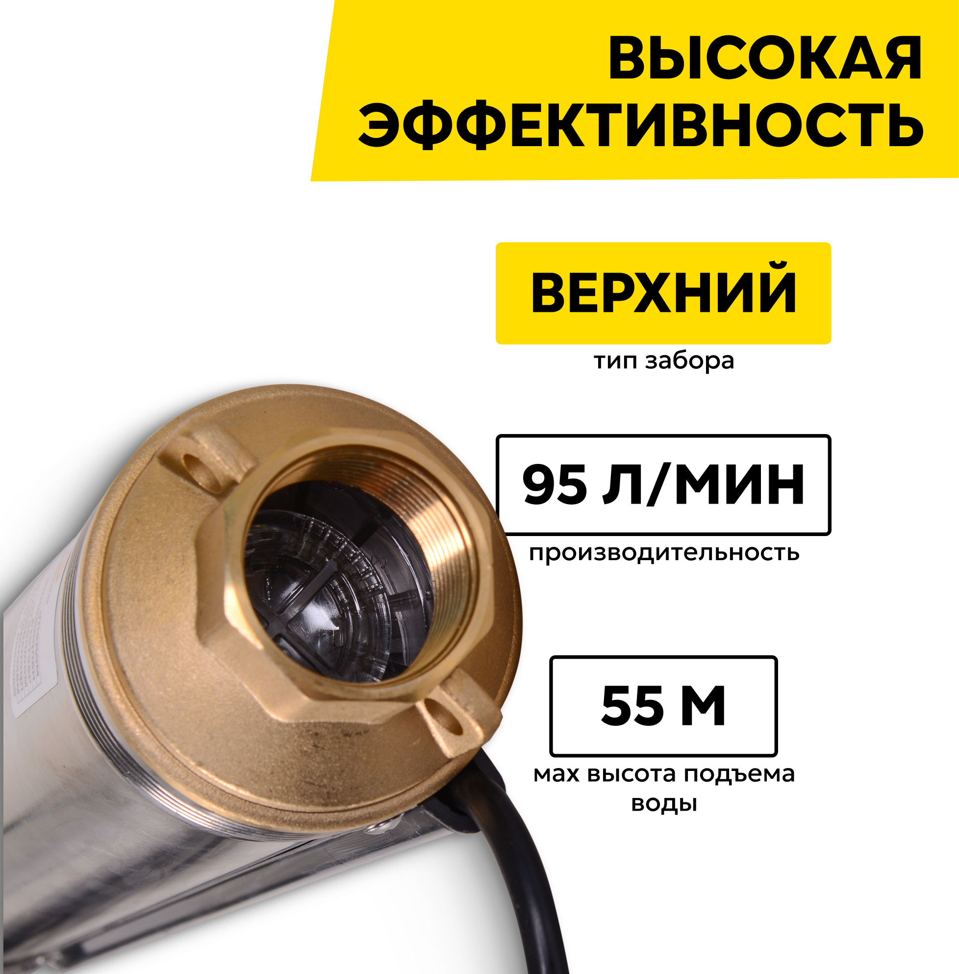 Насос / Скважинный насос вихрь СН-55 (550 Вт, высота подъема – 55 м, 95 л/мин, 1.25”, глубина погружения в воду до 40 м, 90 мм) 17 774 ₽