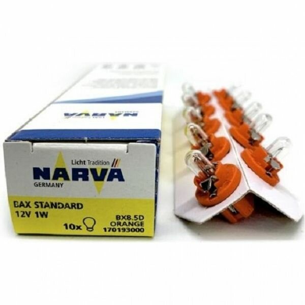 10 цен на Лампа 12V 1W BAX8,5d Orange Narva 17019 / 170193000 пакет 1шт.