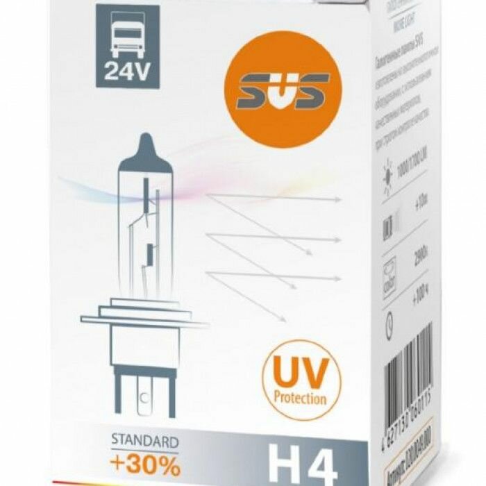 Лампа галогеновая головного света SVS Standard +30%, H4, P43t, 3200K, 24V, 75/70W (1 шт.) информация: