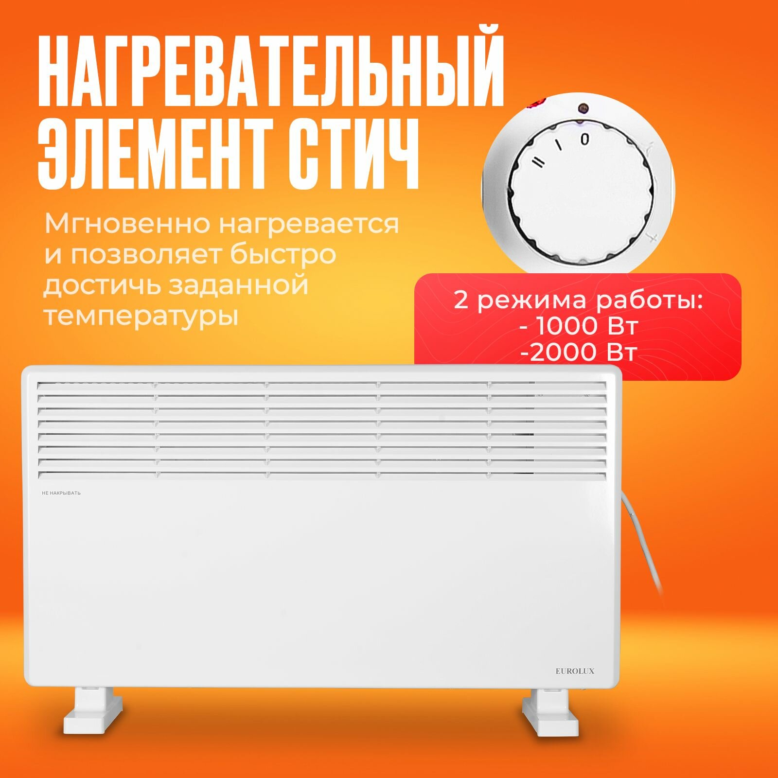 Конвектор ОК-EU-2000CH Eurolux, 2кВт, до 20м2, стич информация:
