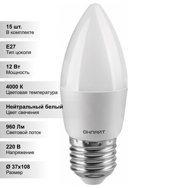 10 цен на (15 шт.) Лампа онлайт 90 058 OLL-C37-12-230-4K-E27-FR
