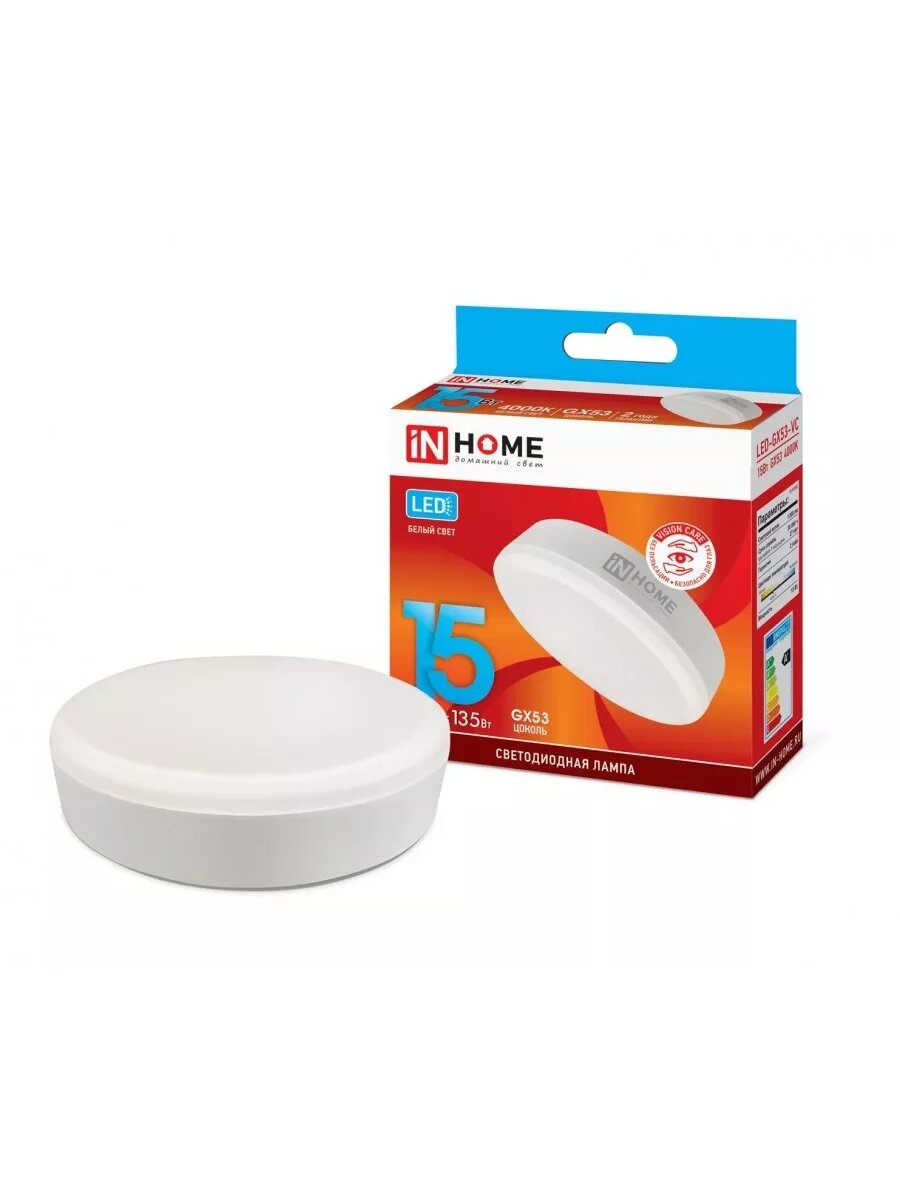 10 цен на (15 шт.) Светодиодная лампочка ASD/inHome VC GX53 св/д 15W(1350lm) 4000К 4K 75x30 (без пульсации) 0822 Нейтральный белый. Цоколь GX53