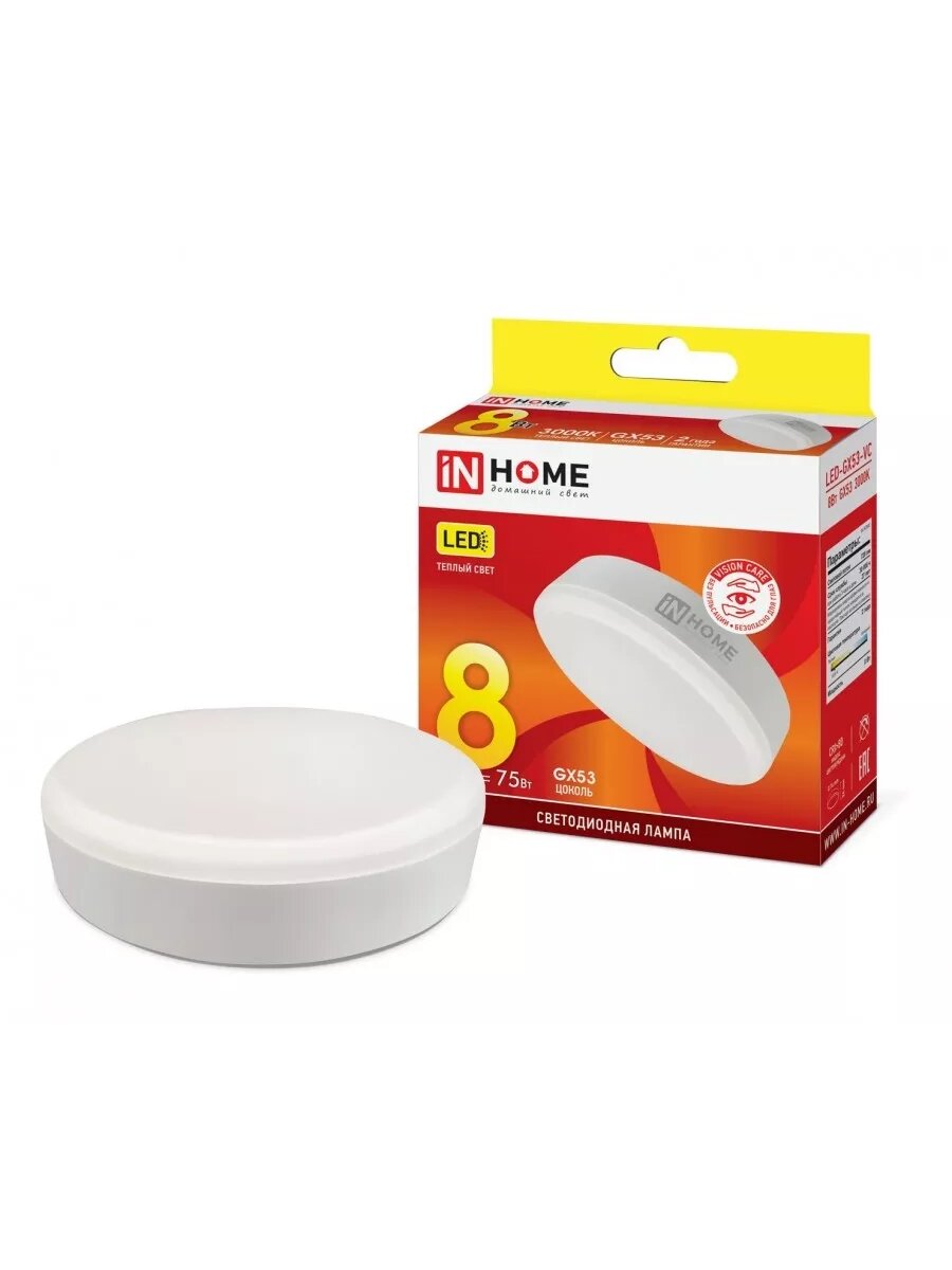Отзывы на (3 шт.) Светодиодная лампочка ASD/inHome VC GX53 св/д 8W(720lm) 3000К 3K 74x24 (без пульсации) 0723 Нейтральный белый. Цоколь GX53