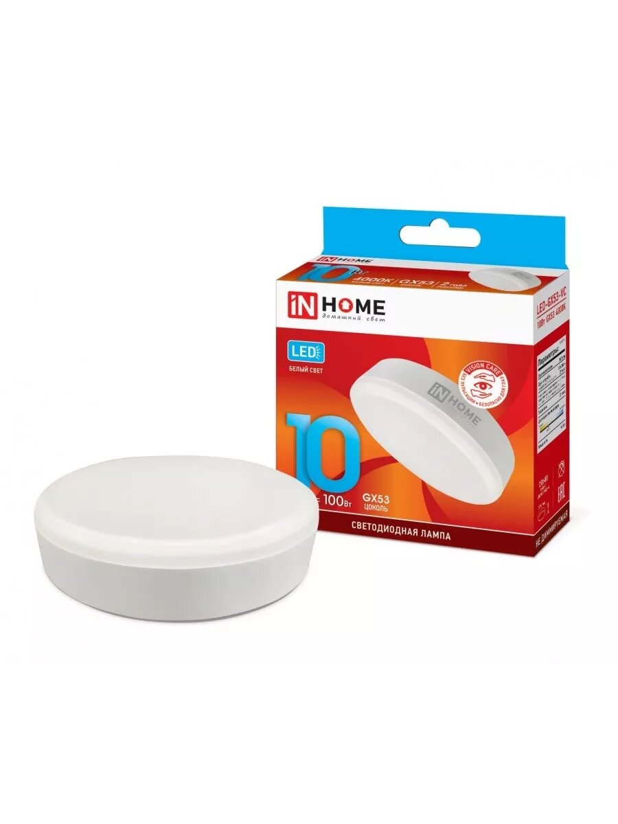 10 цен на (5 шт.) Светодиодная лампочка ASD/inHome VC GX53 св/д 10W(900lm) 4000К 4K 74x24 (без пульсации) 0761 Нейтральный белый. Цоколь GX53
