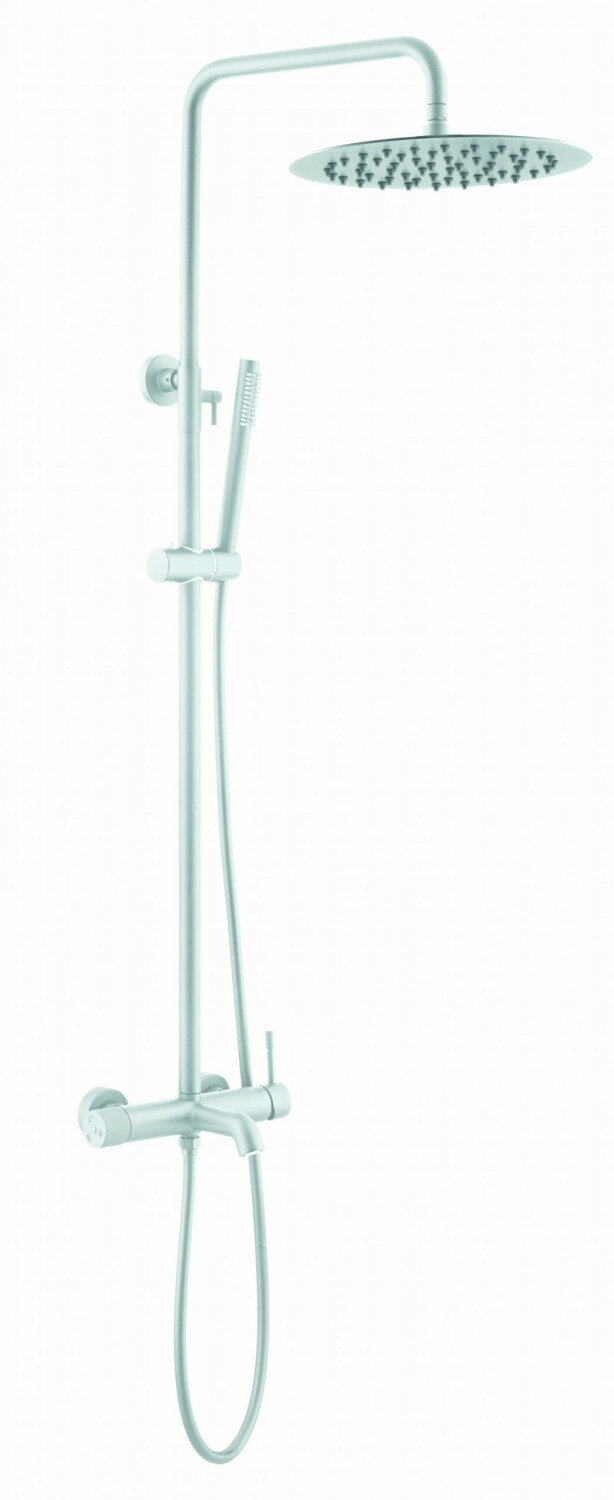 Стойка для душа со смесителем BOHEME Uno белый матовый верхний душ латунь 468-MW