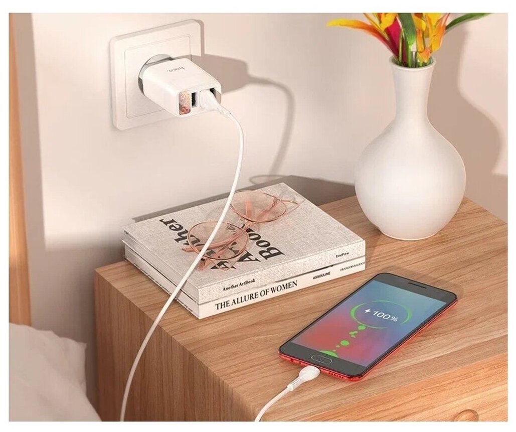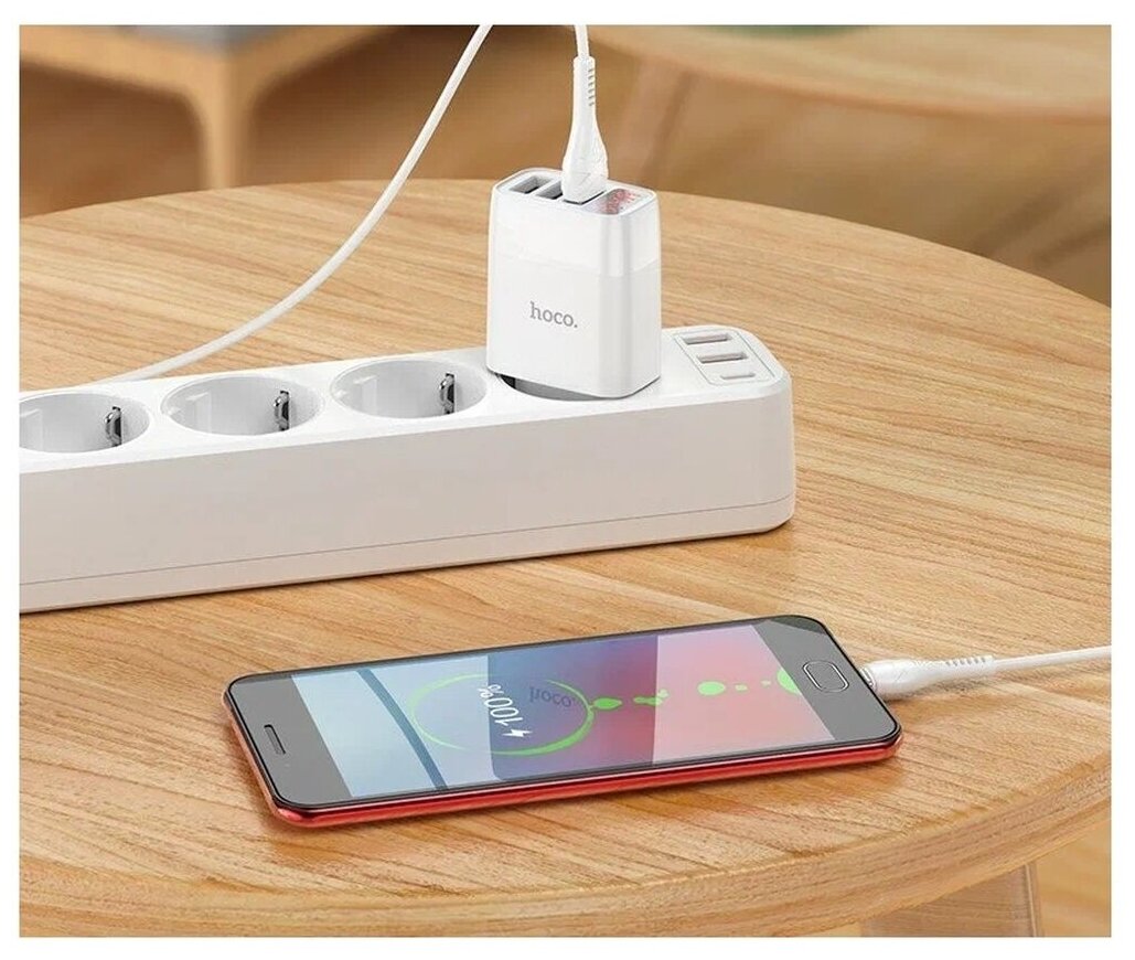 Отзывы на Блок питания сетевой 3 USB HOCO, C93A, Easy, 3400mA, пластик, кабель Type-C, цвет: белый