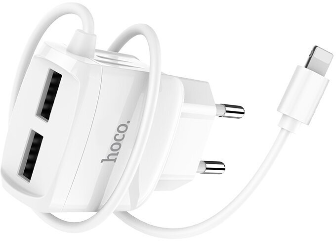 Сетевое зарядное устройство HOCO C59A Mega Joy 2xUSB с Кабелем Lightning, 2.4A, 10.8W, белый