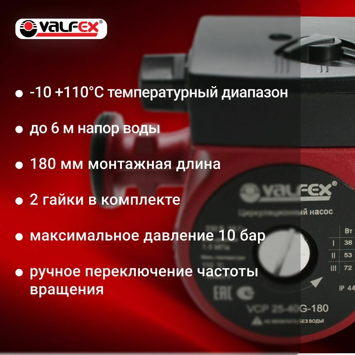 Насос циркуляционный Valfex VCP RS25/6G-180 (с гайками) уп.8/1шт.