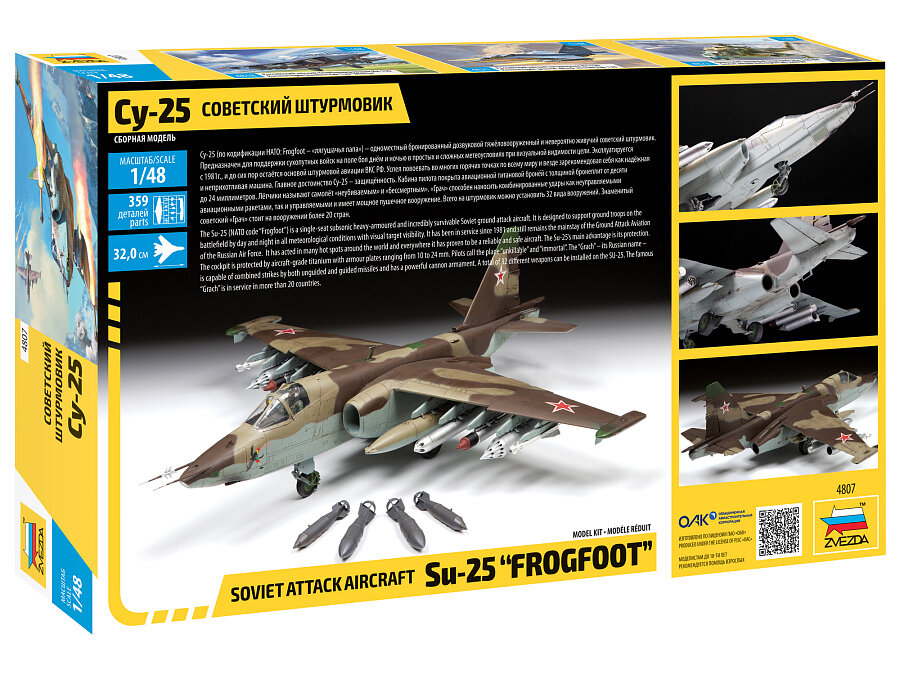 Сборная Модель 1:48 Советский штурмовик Су-25 4807, (Звезда)