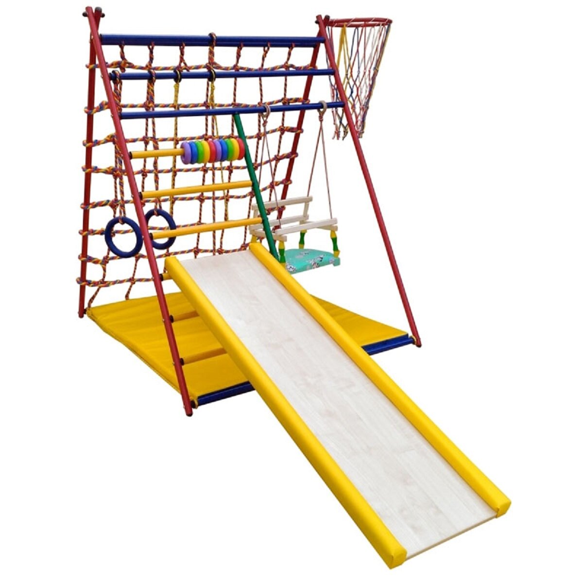 | В комплекте | веревочная лестница, гимнастические кольца, горка, канат, качели, мат, сетка для лазания, тарзанка, трапеция |