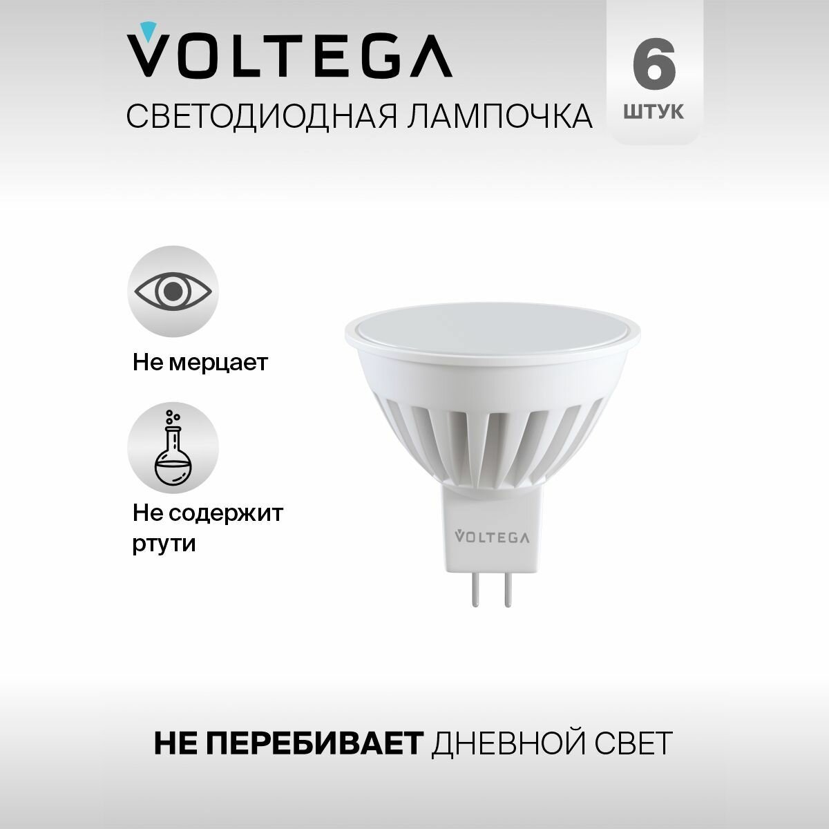 Отзывы на Лампочка светодиодная GU5.3 форма cофит 10W нейтральный белый Voltega Сeramics MR16 4000K упаковка 6 штук