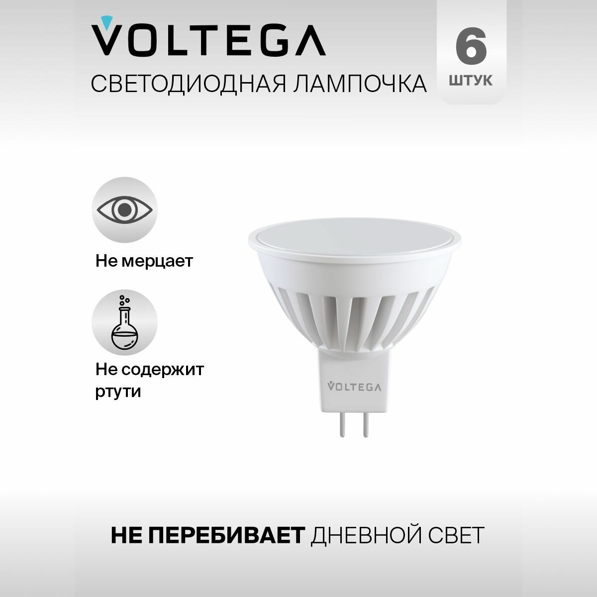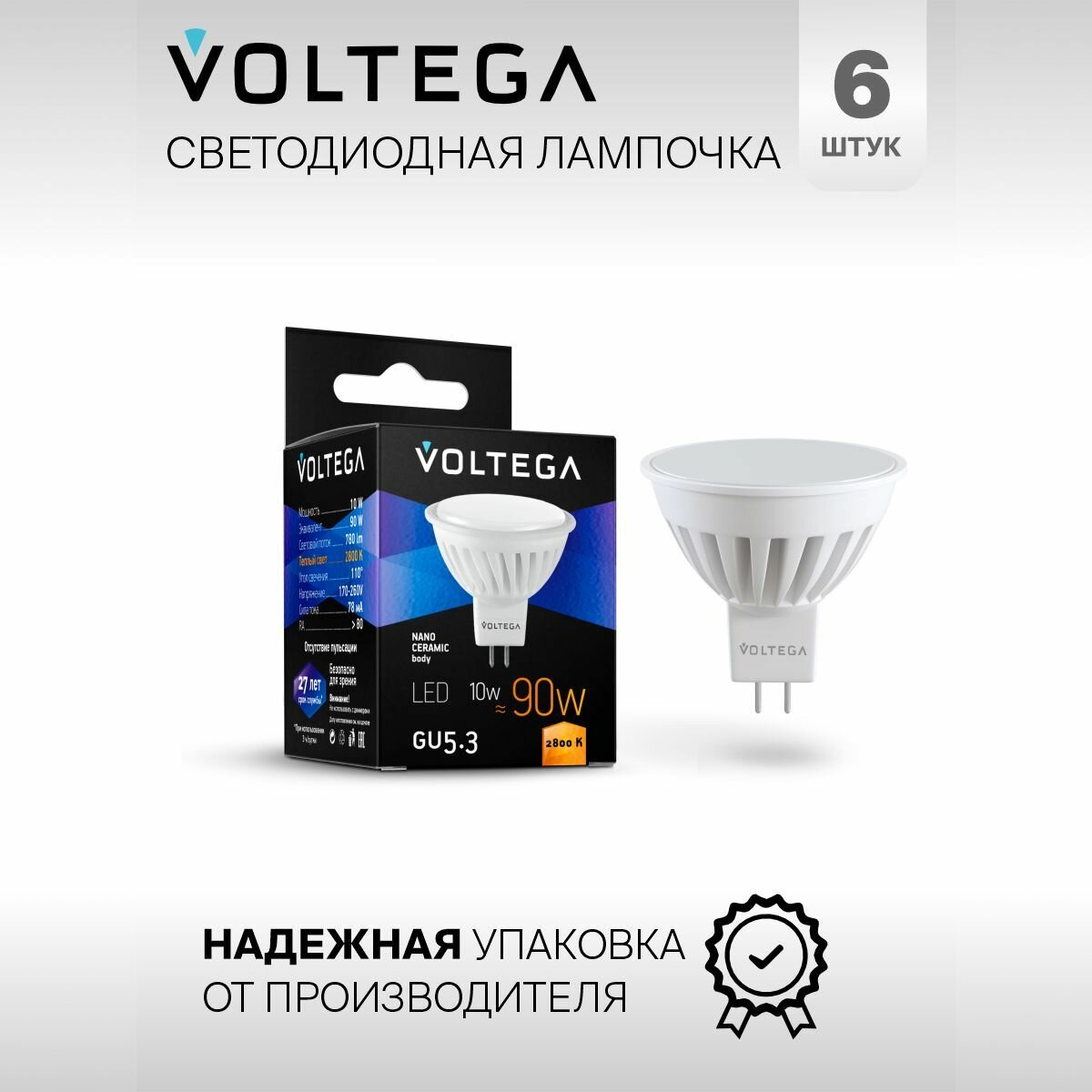 Отзывы на Лампочка светодиодная GU5.3 форма cофит 10W теплый свет Voltega Сeramics MR16 2800K упаковка 6 штук