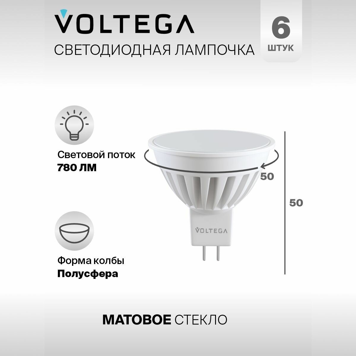 Лампочка светодиодная GU5.3 форма cофит 10W нейтральный белый Voltega Сeramics MR16 4000K упаковка 6 штук 3 069 ₽