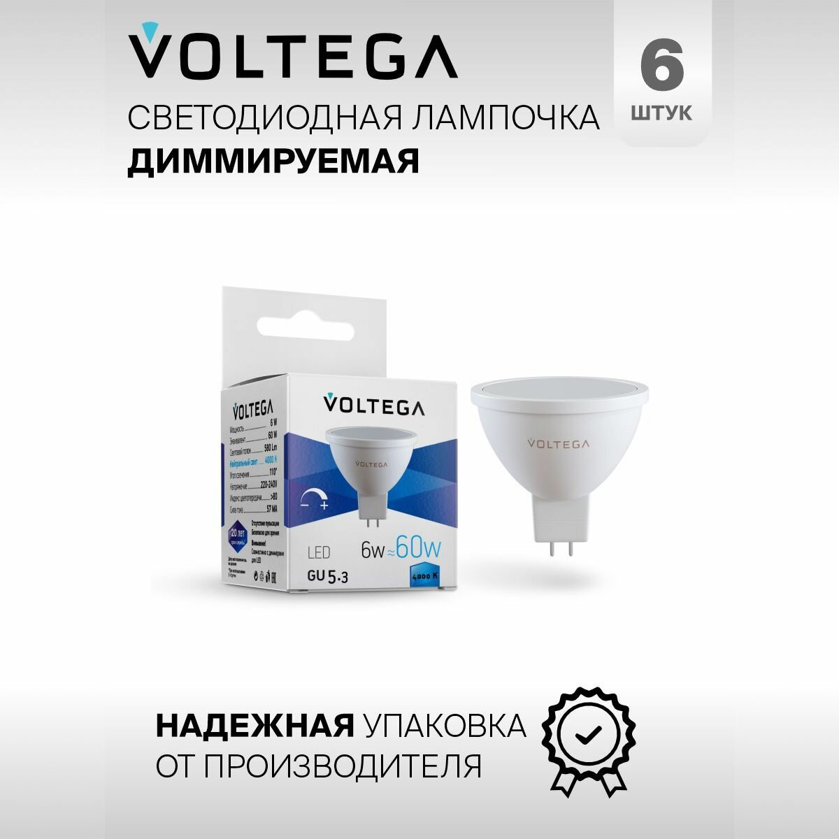 10 цен на Лампочка светодиодная GUGU5.3 форма софит 6W нейтральный свет Voltega Simple MR16 4000K упаковка 6 штук