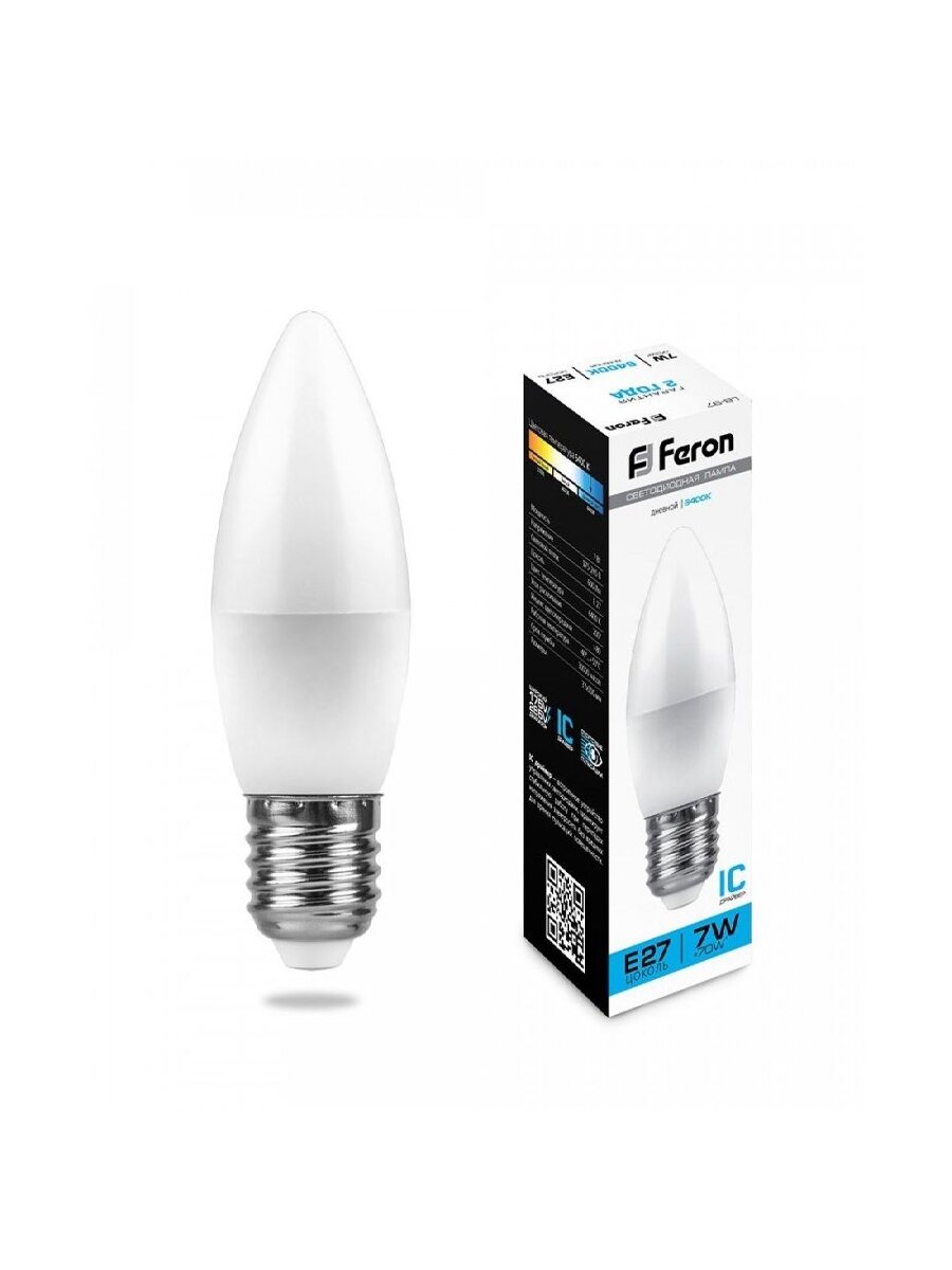 Отзывы на (3 шт.) Светодиодная лампочка Feron свеча C37 E27 7W(600Lm) 6400K 6K матовая 100x37 LB-97 25883 Холодный белый. Цоколь E27