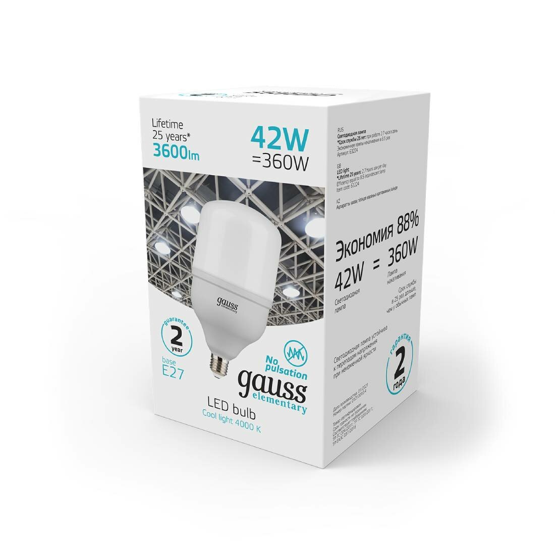 Отзывы на Лампочка светодиодная Gauss LED Elementary E27 42В 3600Лм 180-240V 4000K 63224