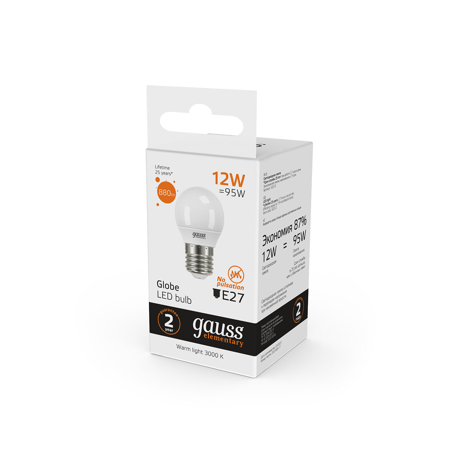 Отзывы на 30шт. Gauss Лампа Elementary Шар 12W 880lm 3000K Е27 LED, 53212