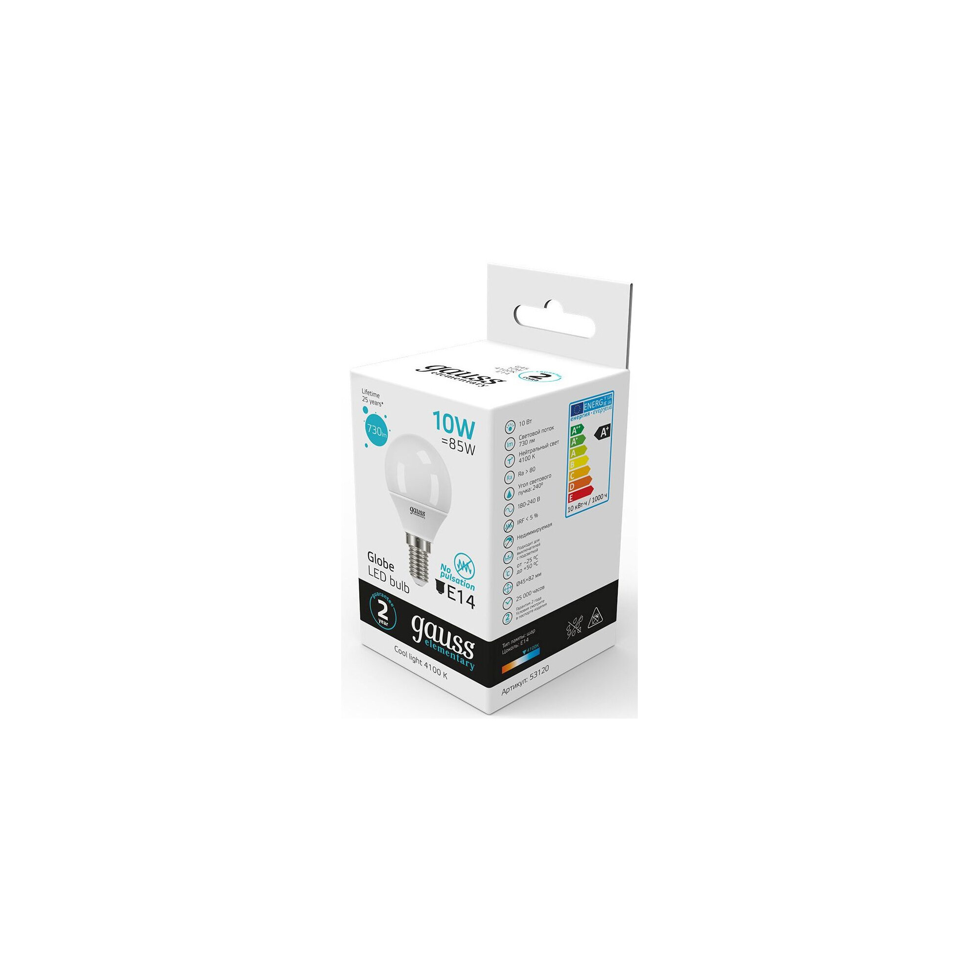 Отзывы на Лампа светодиодная Gauss Elementary, 10Вт, цоколь E14, белый нейтральный, 4100К (10шт) (53120)