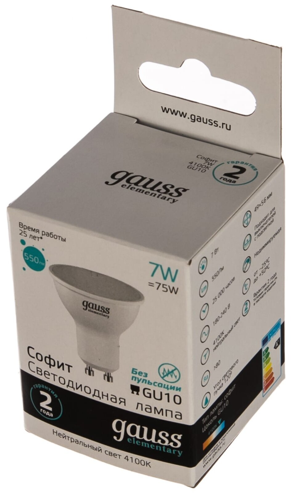 Отзывы на Лампочка светодиодная MR16 7W 550lm 4100К GU10 УПАКОВКА 10 шт. Gauss Elementary