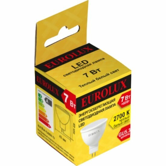 Отзывы на Светодиодная лампа Eurolux LL-E-MR16-7W-230-2,7K-GU5.3 (рефлектор, 7Вт, тепл, GU5.3), 76/2/23