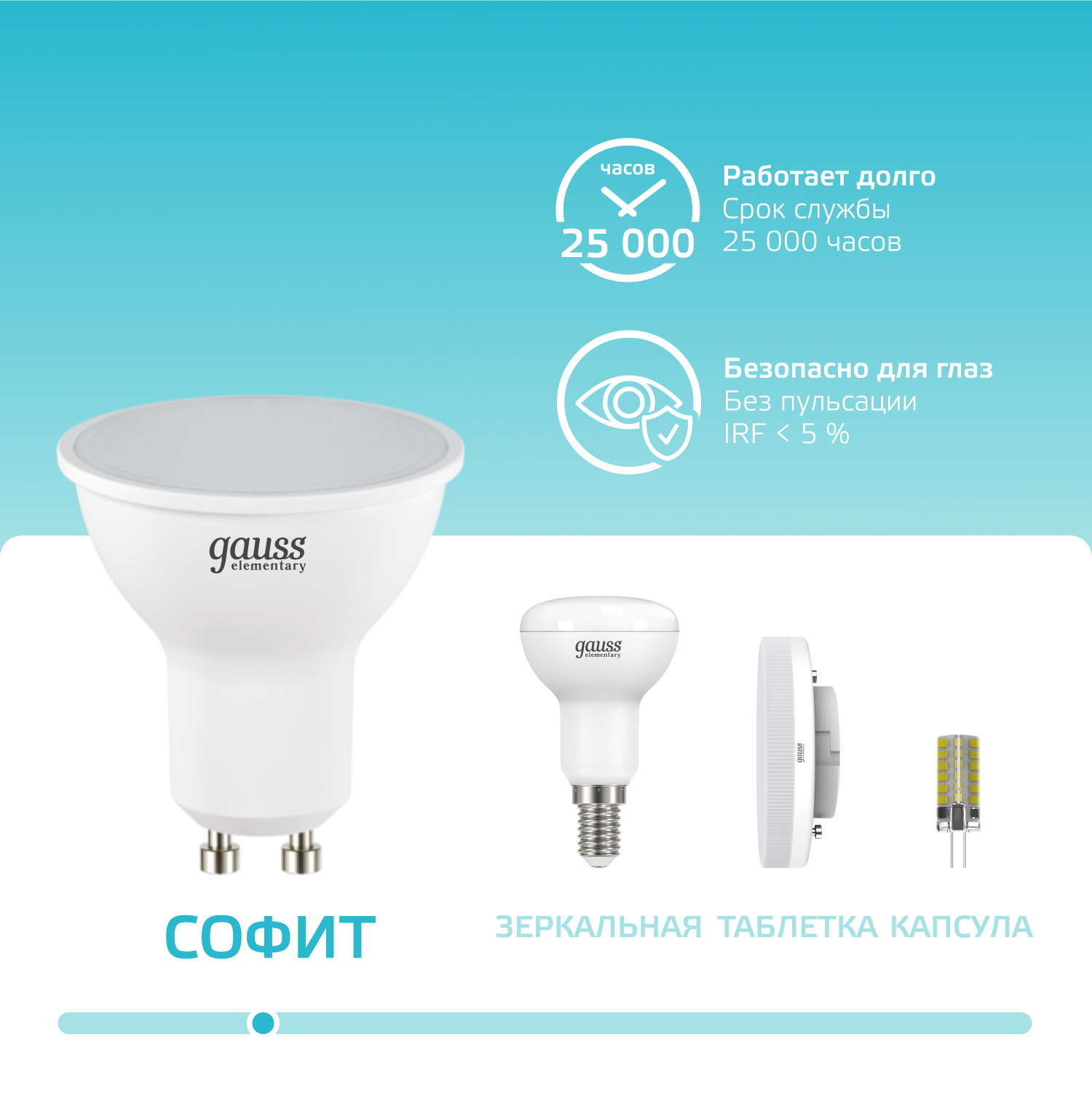 Лампочка светодиодная Gauss Elementary 11В эквивалент 110В 4100K 850Лм GU10 для спотов MR16 13621 (комплект из 2 шт.) информация: