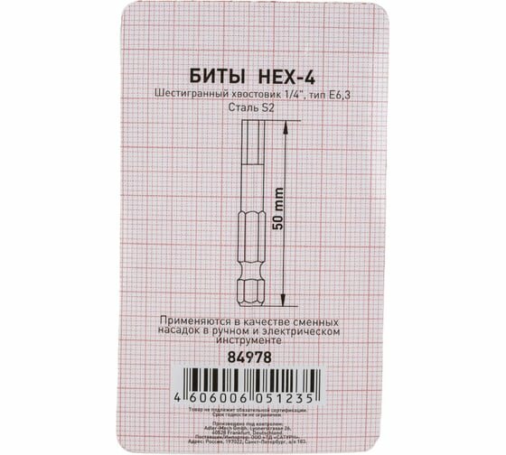 10 цен на Биты профи 50мм, 8шт, HEX-4, Триггер, сталь S2, 84978, сделаны из прочных и качественных материалов, (4уп по 2шт)