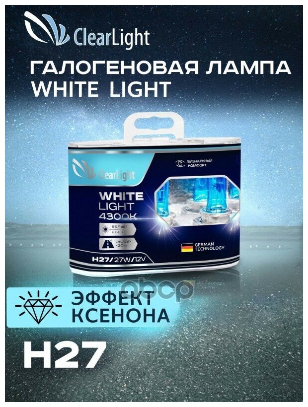 Комплект ламп H27(Clearlight)12V-27W WhiteLight (2 шт.), MLH27WL информация: