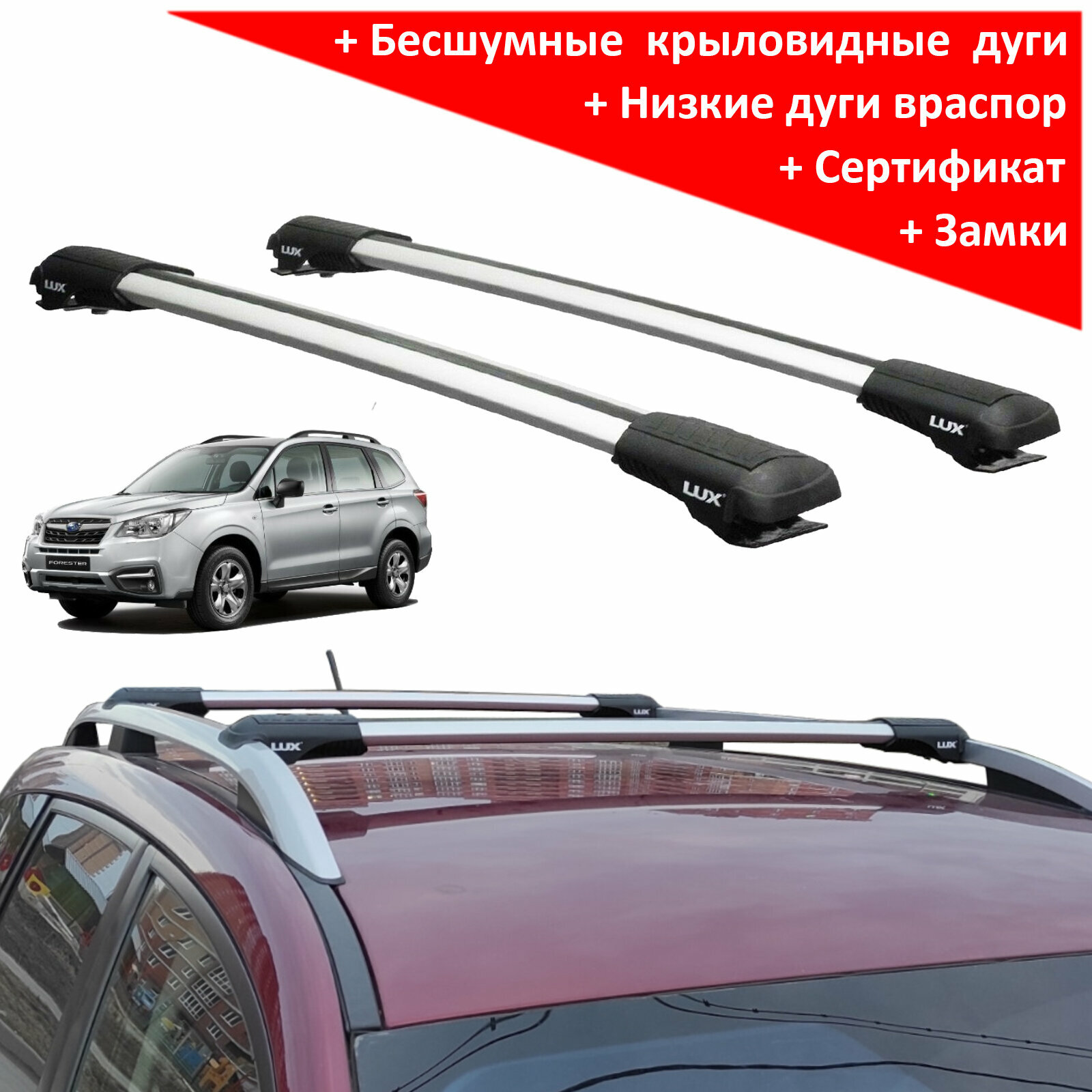 Багажник на рейлинги Субару Форестер 2013-2019 (Subaru Forester SJ, 2013-2019) - Lux Hunter L54-R, серебристые дуги информация: