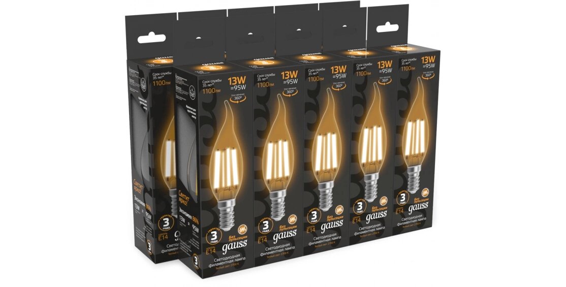 Отзывы на Лампа филаментная Gauss Filament, 13Вт, цоколь E14, белый теплый, 2700К (10шт) (104801113)