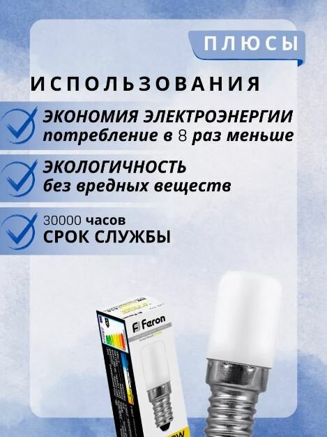 Лампа светодиодная Feron 25295 LB-10 2Вт E14 2700K 230В для холодильника