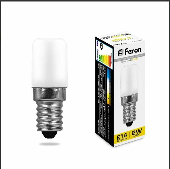 Лампа светодиодная LED 2вт Е14 теплый для холодильников | код 25295 | FERON ( 1шт )