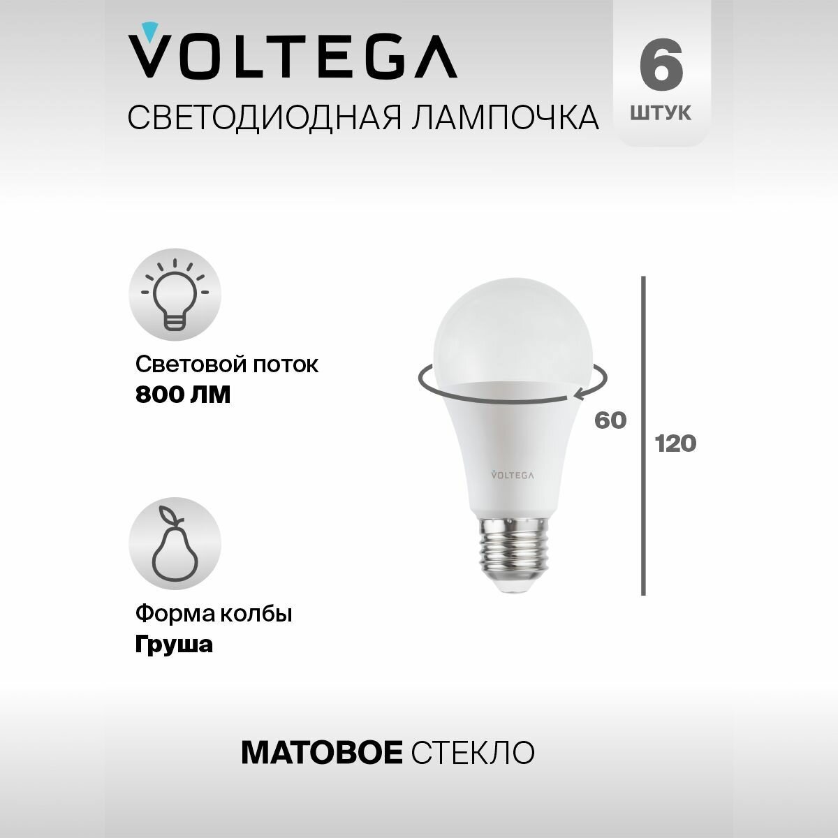 Лампочка светодиодная E27 форма груши 11W теплый свет Voltega Simple А60 2800K упаковка 6 штук информация: