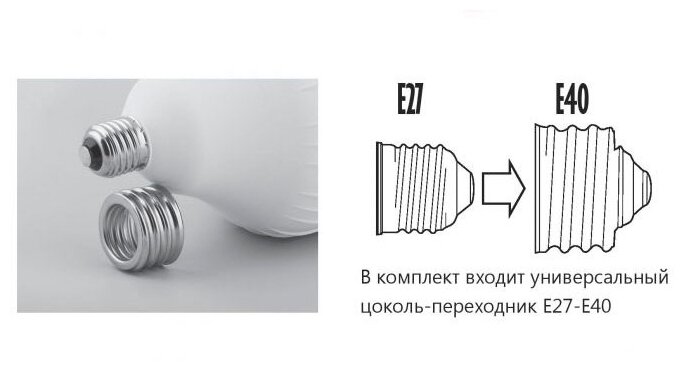 | Дополнительная информация | угол расхождения луча - 220 градусов; в комплекте адаптер на E40 |
