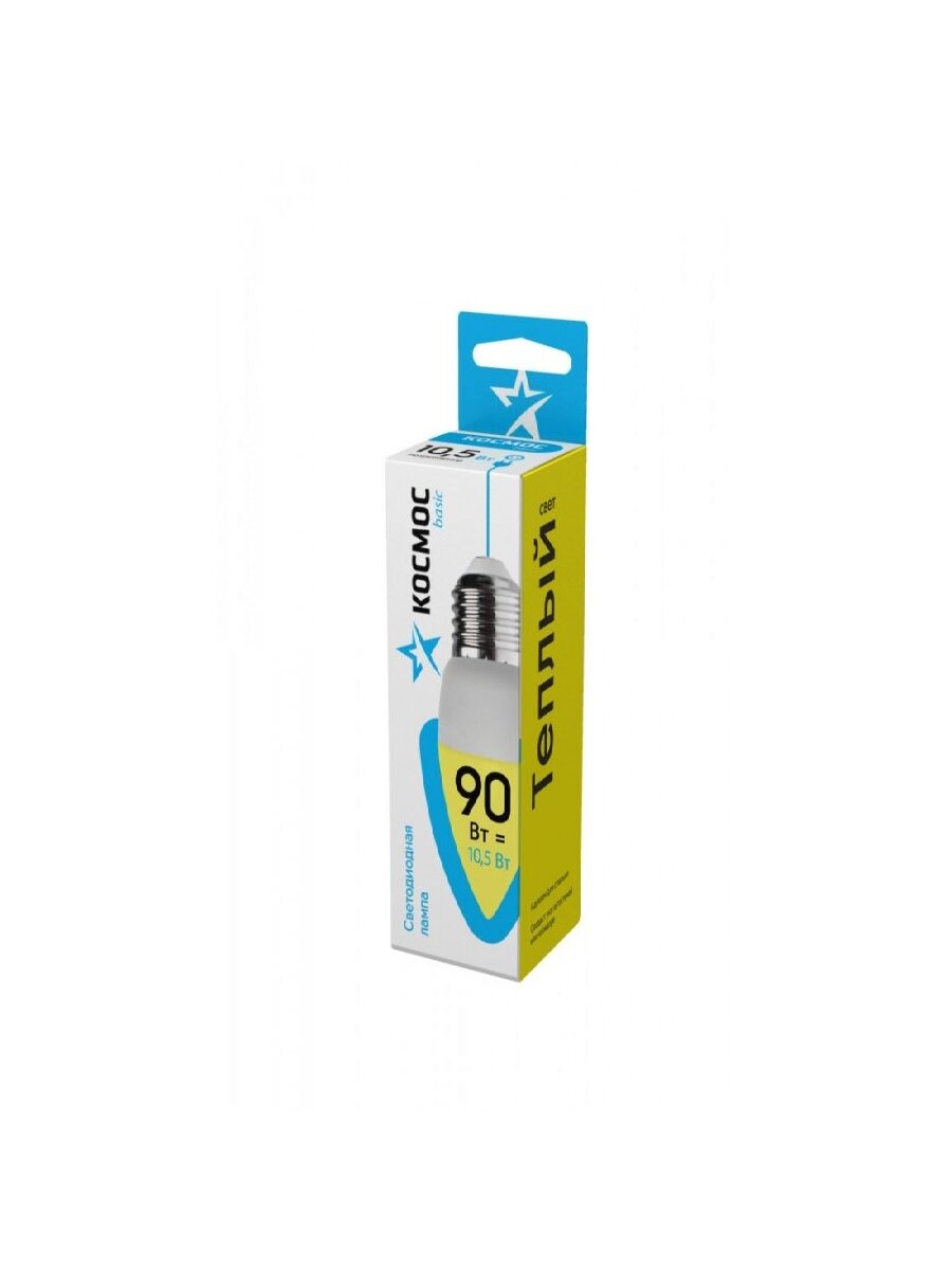 Лампочки светодиодные Космос Свечка 10.5Вт Е27 (аналог 90Вт) Теплый свет