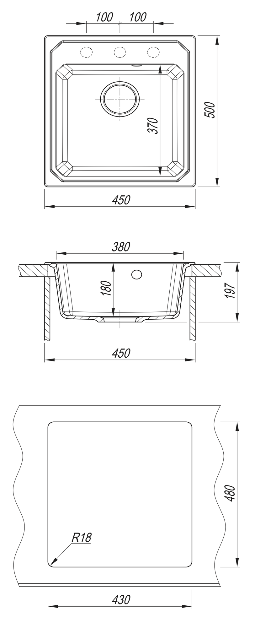 Мойка кухонная квадратная Bamboo Кардинал 450 Серый (29.030.B0450.408)