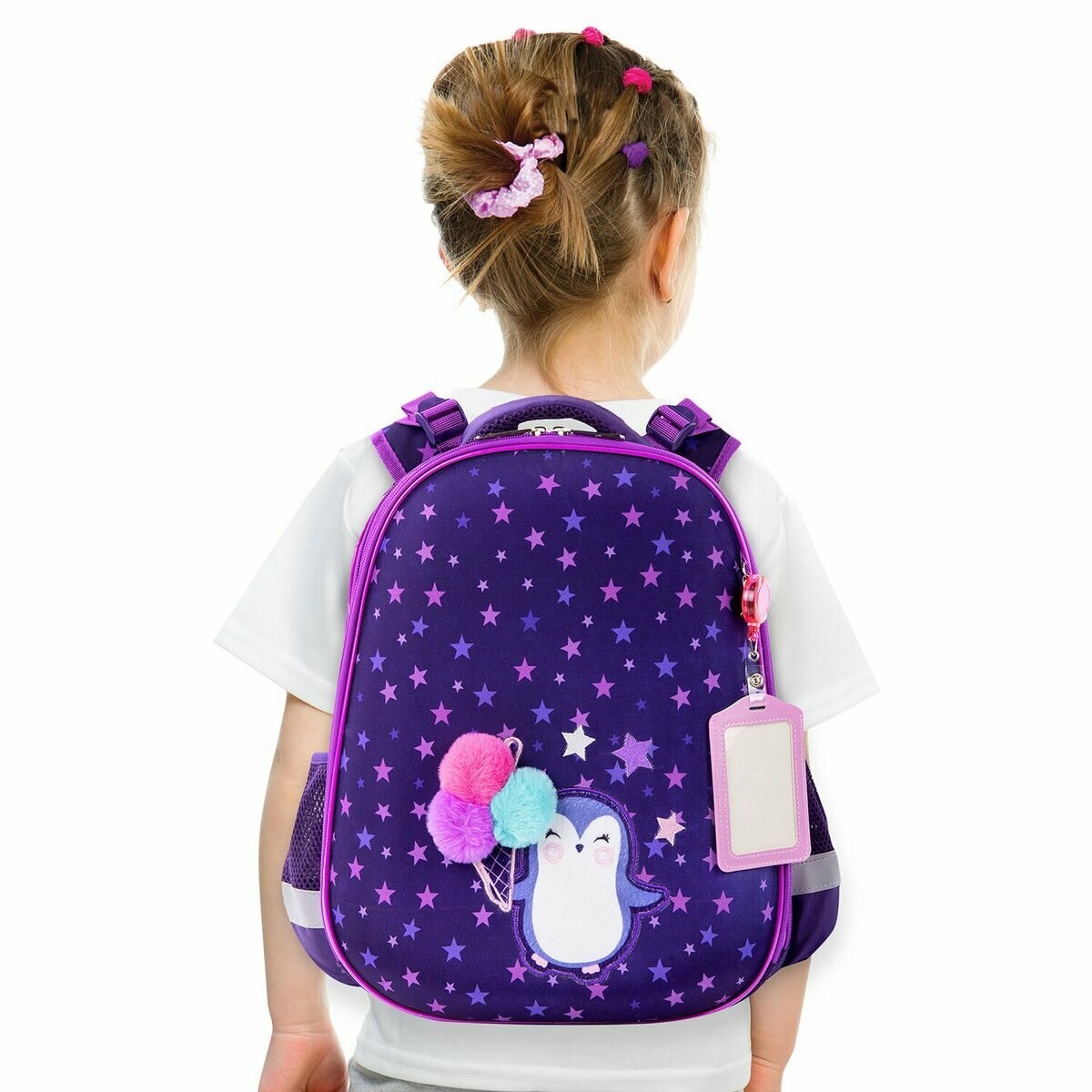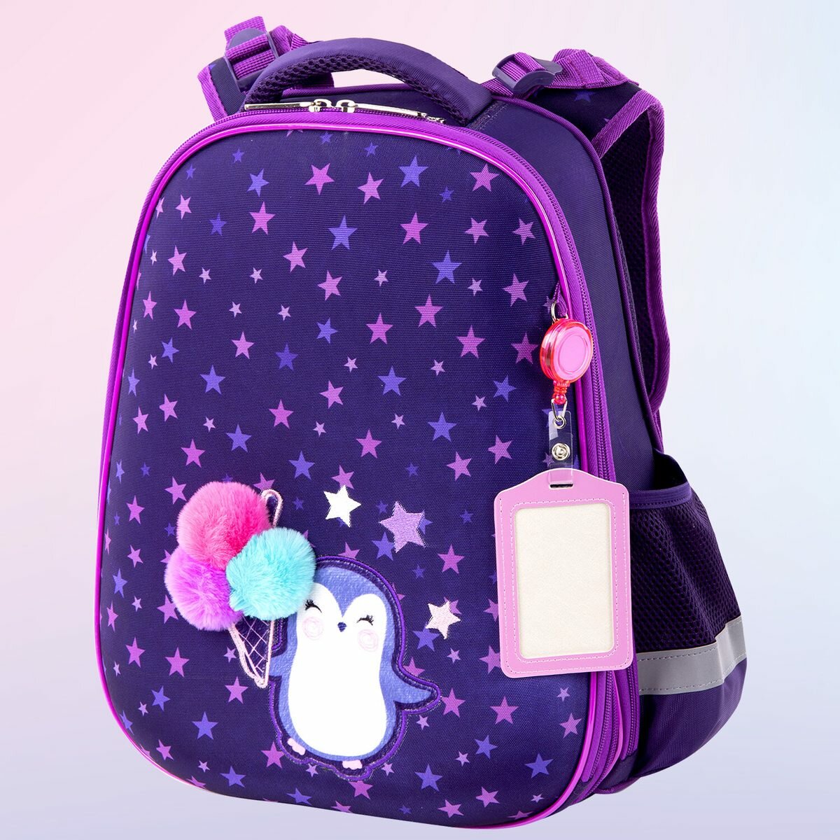 Ранец / рюкзак / портфель школьный для девочки первоклассницы Юнландия Extra, с дополнительным объемом, Penguin, 38х29х18 см