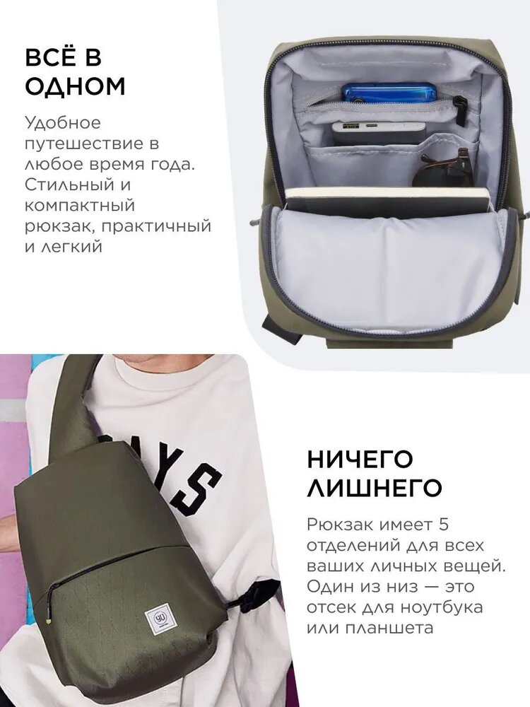 Рюкзак NINETYGO City sling bag, зеленый 2 435 ₽