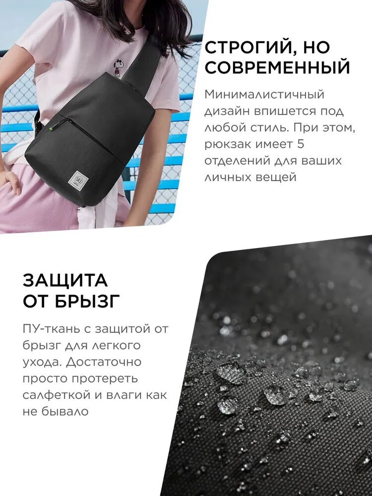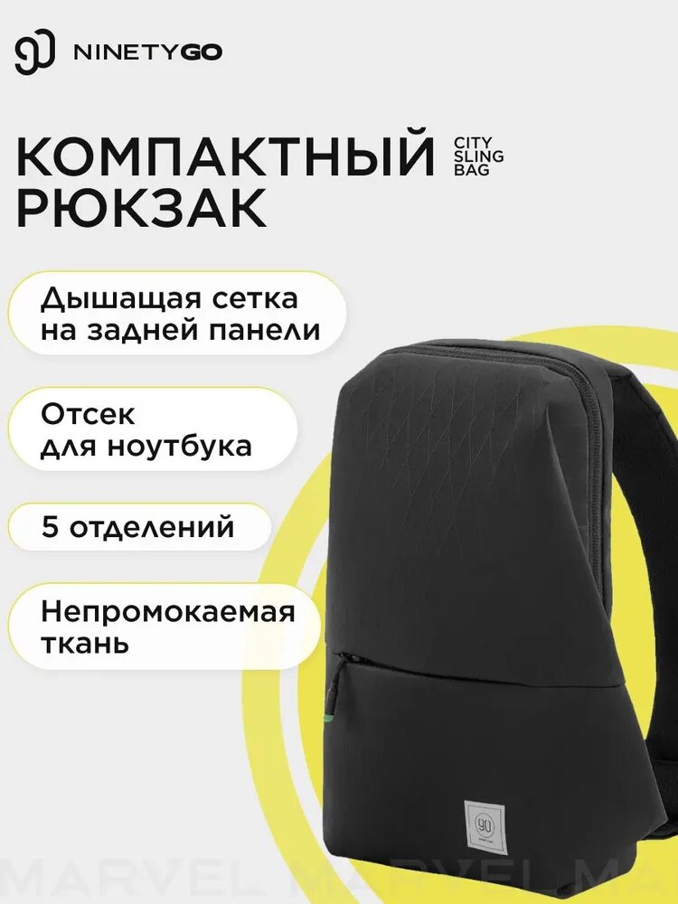 Рюкзак NINETYGO City sling bag черный, городской, 5 отделений информация: