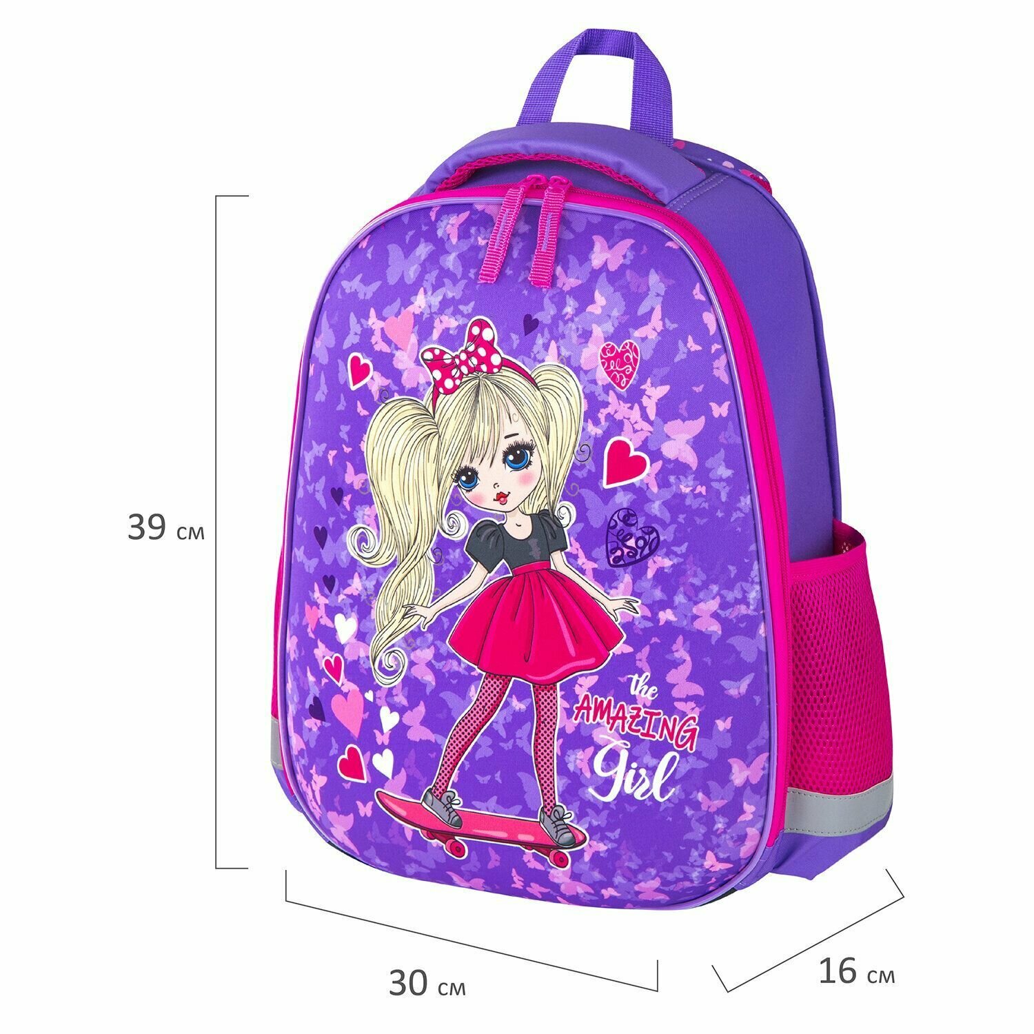 Ранец для девочки Пифагор ортопедический, Eva Basic, 1 отделение, эргономичная спинка, "Amazing girl", 39х30х16 см информация: