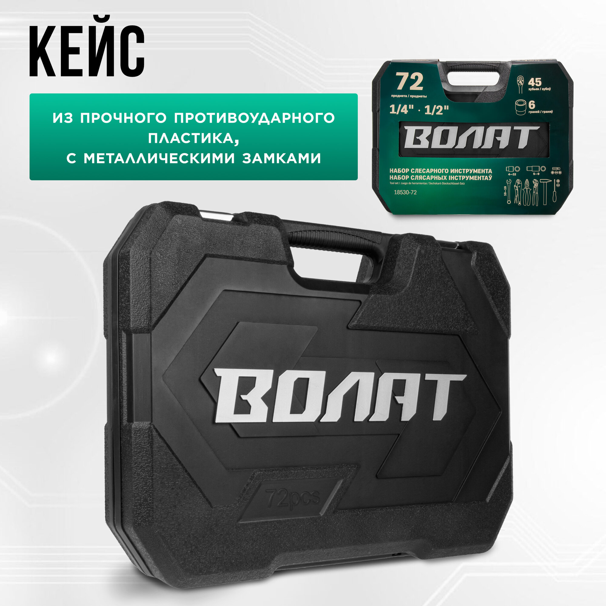 Набор инструментов Волат 1/4 , 1/2 6 граней 72 предмета 18530-72 .