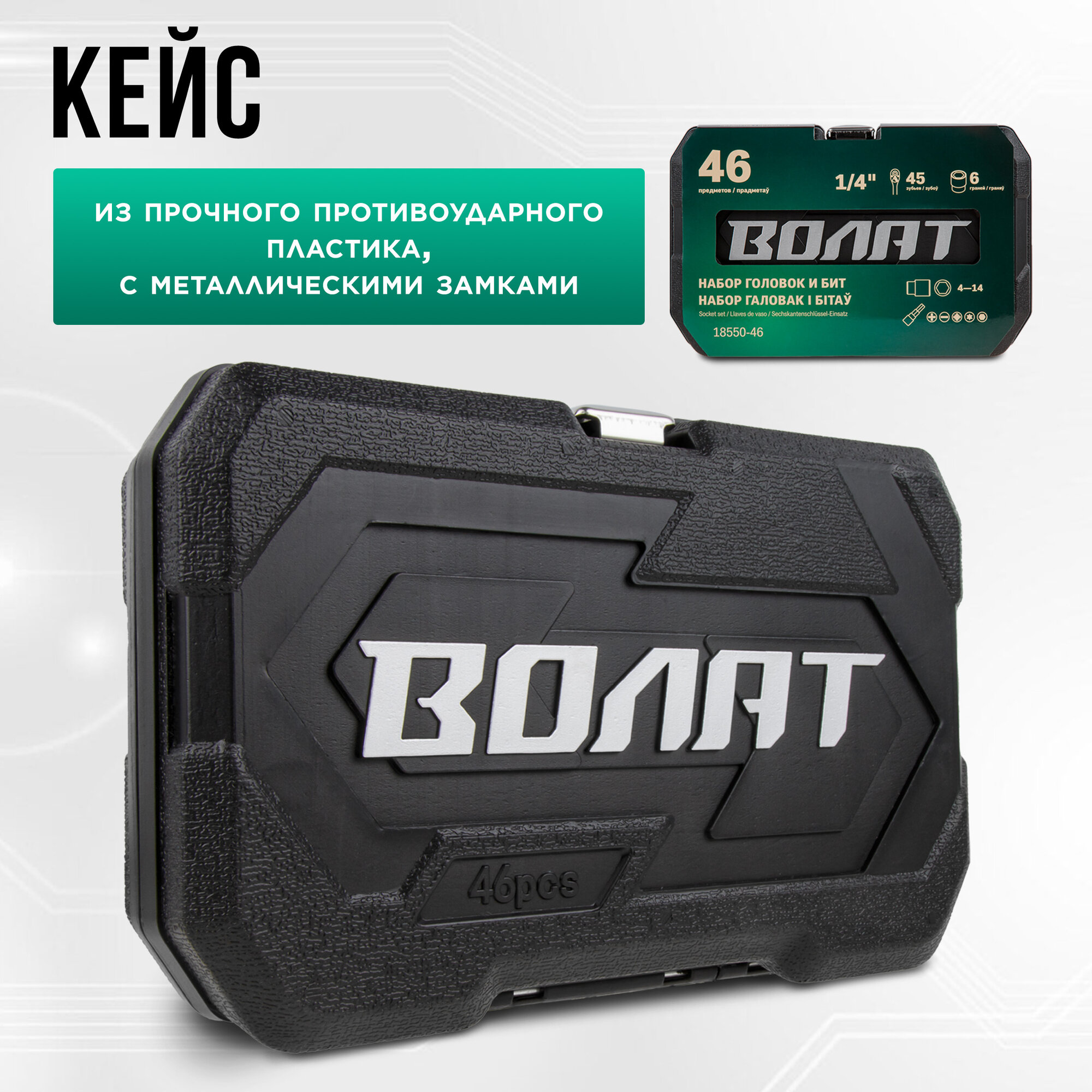 Набор инструментов 1/4" 6 граней 46 предметов в кейсе волат (18550-46) информация: