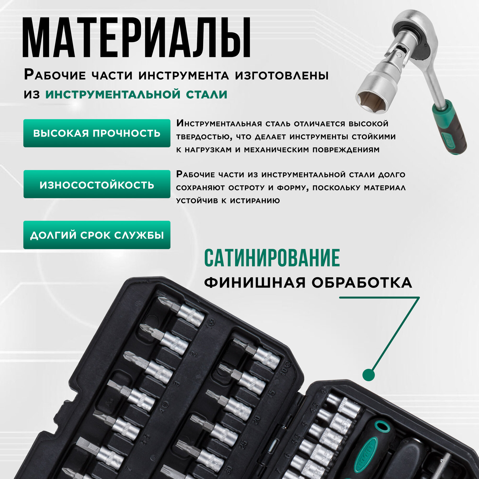 Отзывы на Набор инструментов 1/4" 6 граней 46 предметов в кейсе волат (18550-46)
