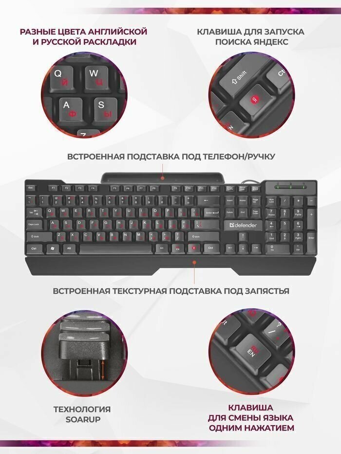 Отзывы на Клавиатура проводная Defender, Search, HB-790, мембранная, USB, цвет: чёрный, (арт.45790) US