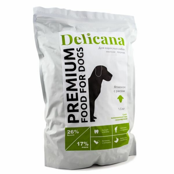 Delicana Сухой корм для собак мелких пород, с ягненком и рисом. 1,5кг