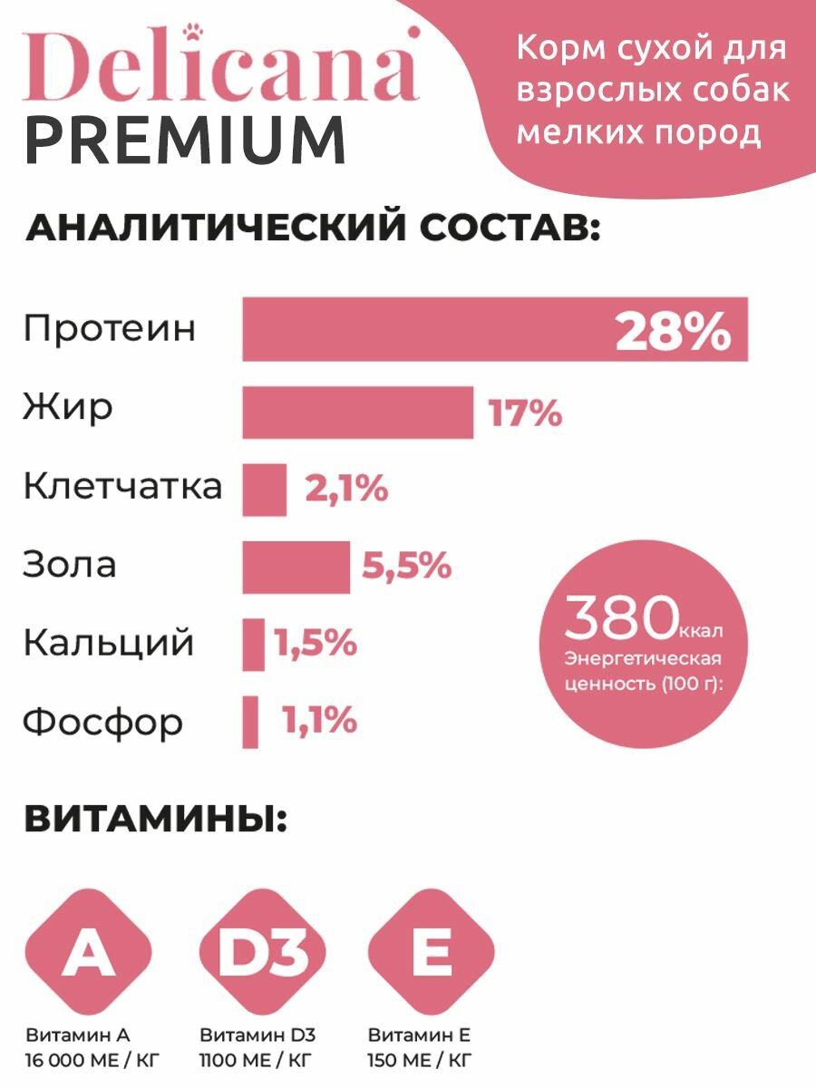 DELICANA Premium Сухой корм для собак мелких пород, курица с овощами, 1,5 кг 1 734 ₽