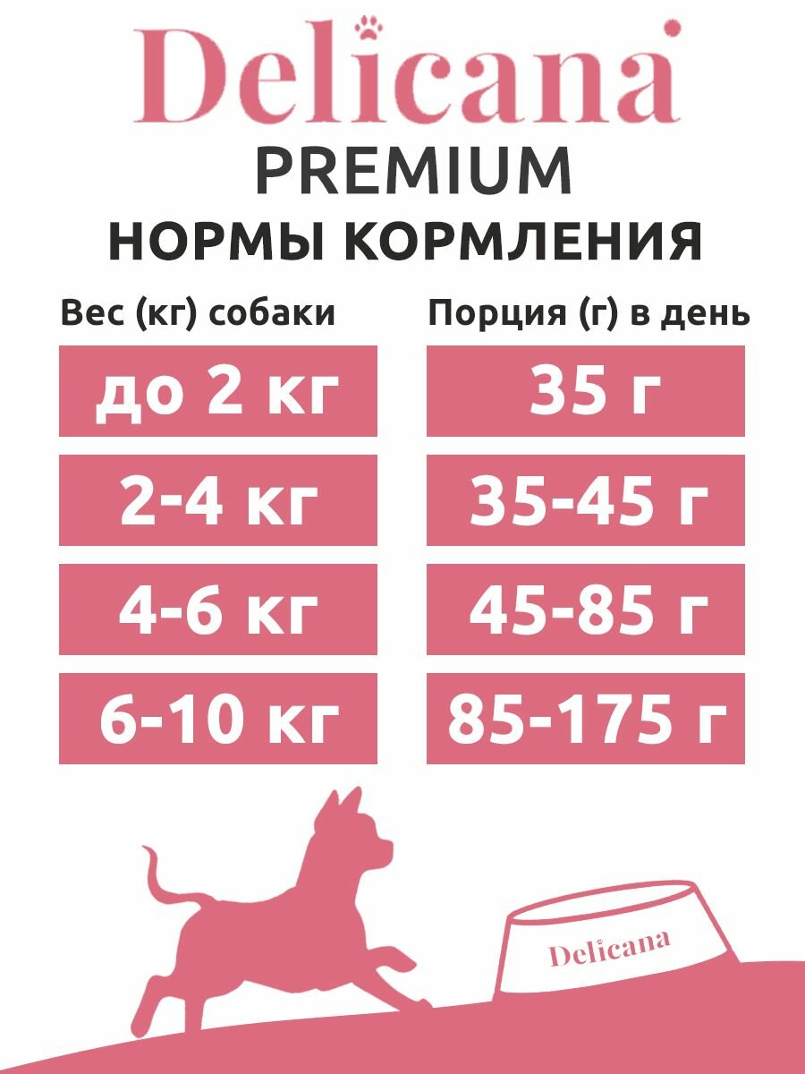 DELICANA Premium Сухой корм для собак мелких пород, лосось и рис, 1,5 кг 2 000 ₽