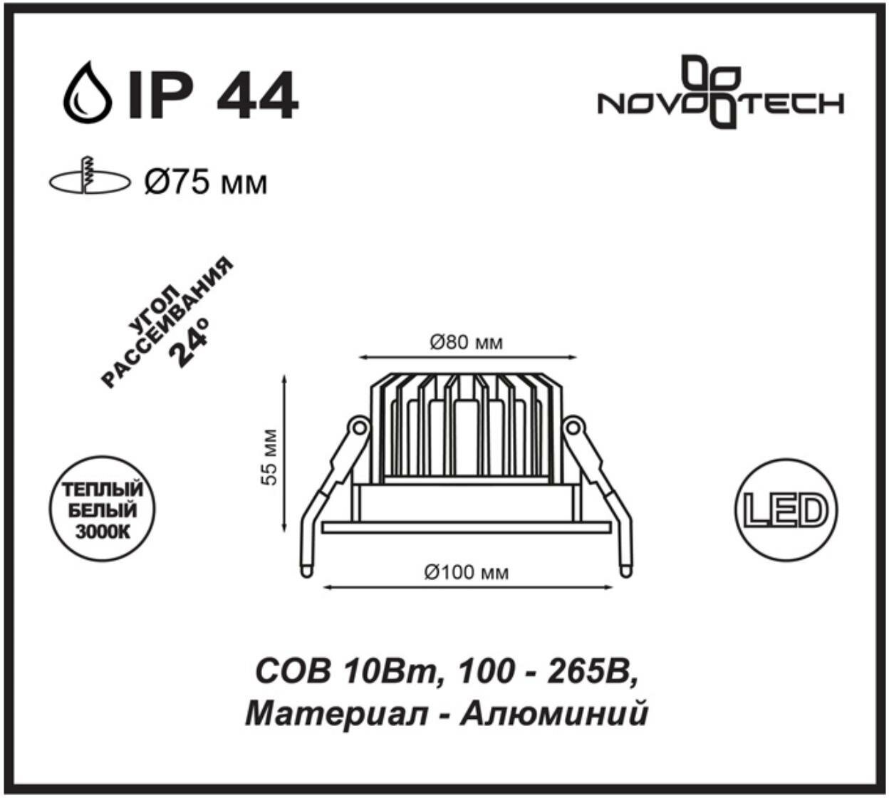 Встраиваемый светодиодный светильник | NOVOTECH | DRUM | 357602 | LED | 3000K | белый | алюминий | IP44 | 2 430 ₽